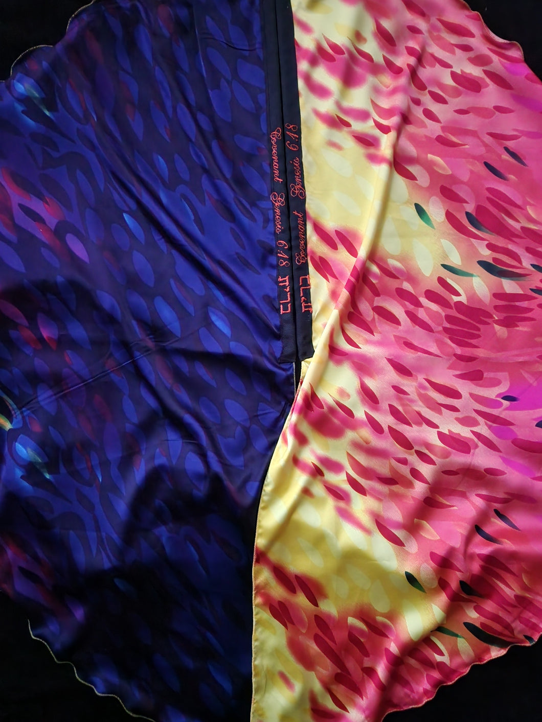 Each of the 2 angel-wing flags are embroidered with the title "Covenant" in English and Hebrew; additional floral highlights accompany each design. It's time to reclaim His covenant in the Earth!